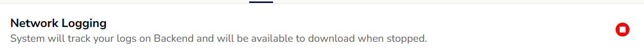 - When you have captured the required activity, click on the Stop Icon next to Network Logging.