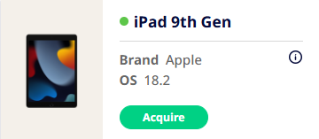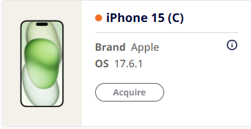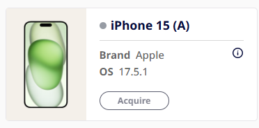 - Online: Device is available to be acquired as denoted by a green indicator and an interactive 'Acquire' button underneath the device.