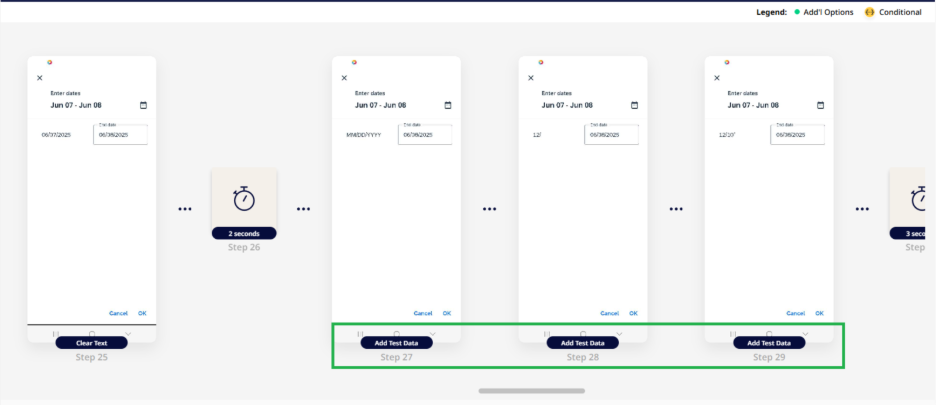 - Test data and text boxes: When using test data to enter values into the text box, exercise patience since this takes a little longer than typing the text. Wait to make to see the "Ready" status before performing your next action. We are currently working to implement performance improvements that will benefit this task.