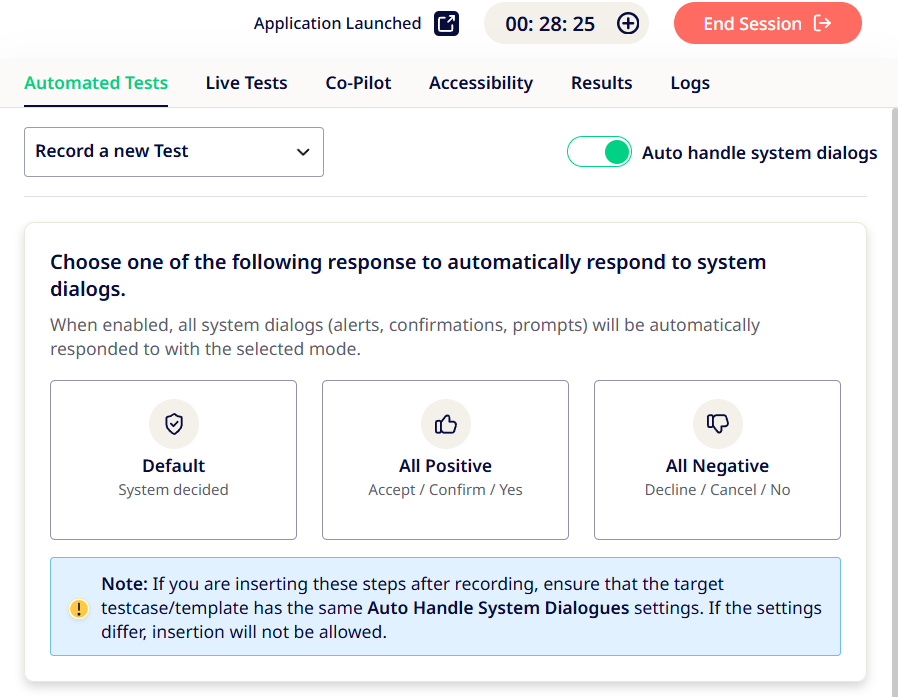 Once enabled, Sofy will automatically handle all dialog pop-ups and there will be no further test interruptions / failures due to unexpected screen pop-ups.
